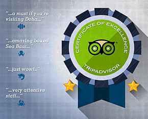 Giving you the full ocean-to-table experience, right by the beach in contemporary Katara, this is where you want to dine in Doha. Once you’ve spotted the most alluring fish or crustacean in our counter (charged by weight), you can decide how you’d like it cooked – in Mediterranean, Far Eastern, Arabic or Japanese style. Our waiters can then guide you through the selection of starters, salads, soups and drinks. The dining room is buzzing and vast, so you might be seated on fuchsia floor cushions, on cream leather banquettes, or on stools up at the bar – and while some tables have sea views, others invite you to keep a watchful eye on the slick open kitchen.